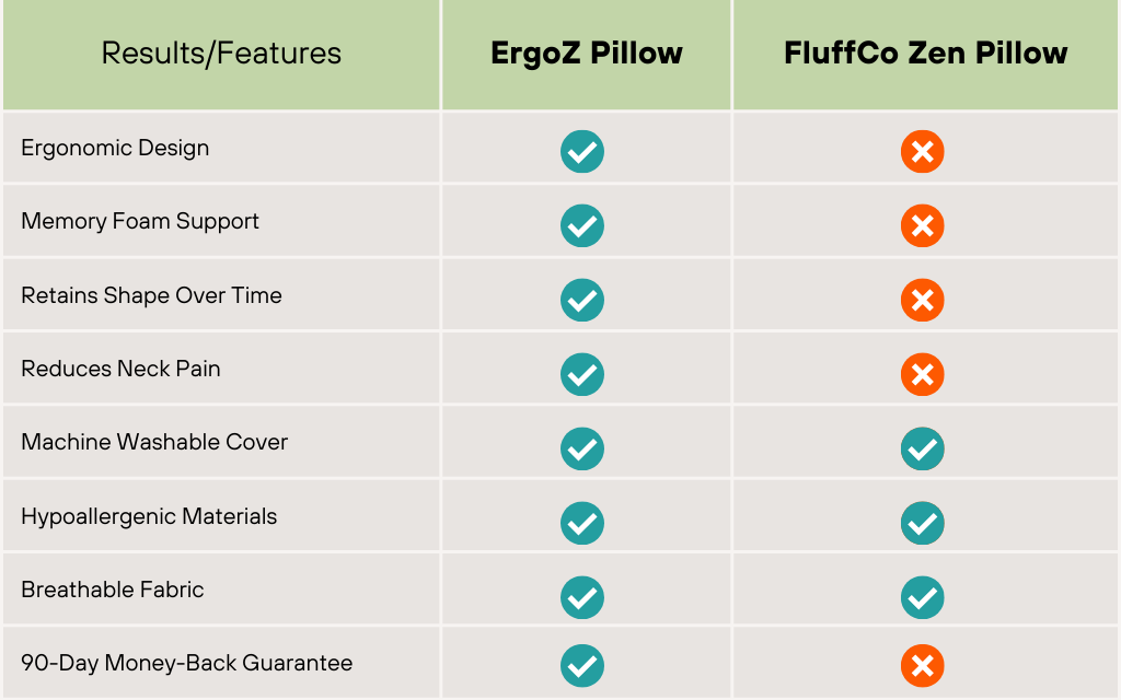 Here’s the thing: when you have two similar products, you HAVE TO check the fine details. So, is FluffCo the best pillow for everyday use? ErgoZ proves that it isn’t.